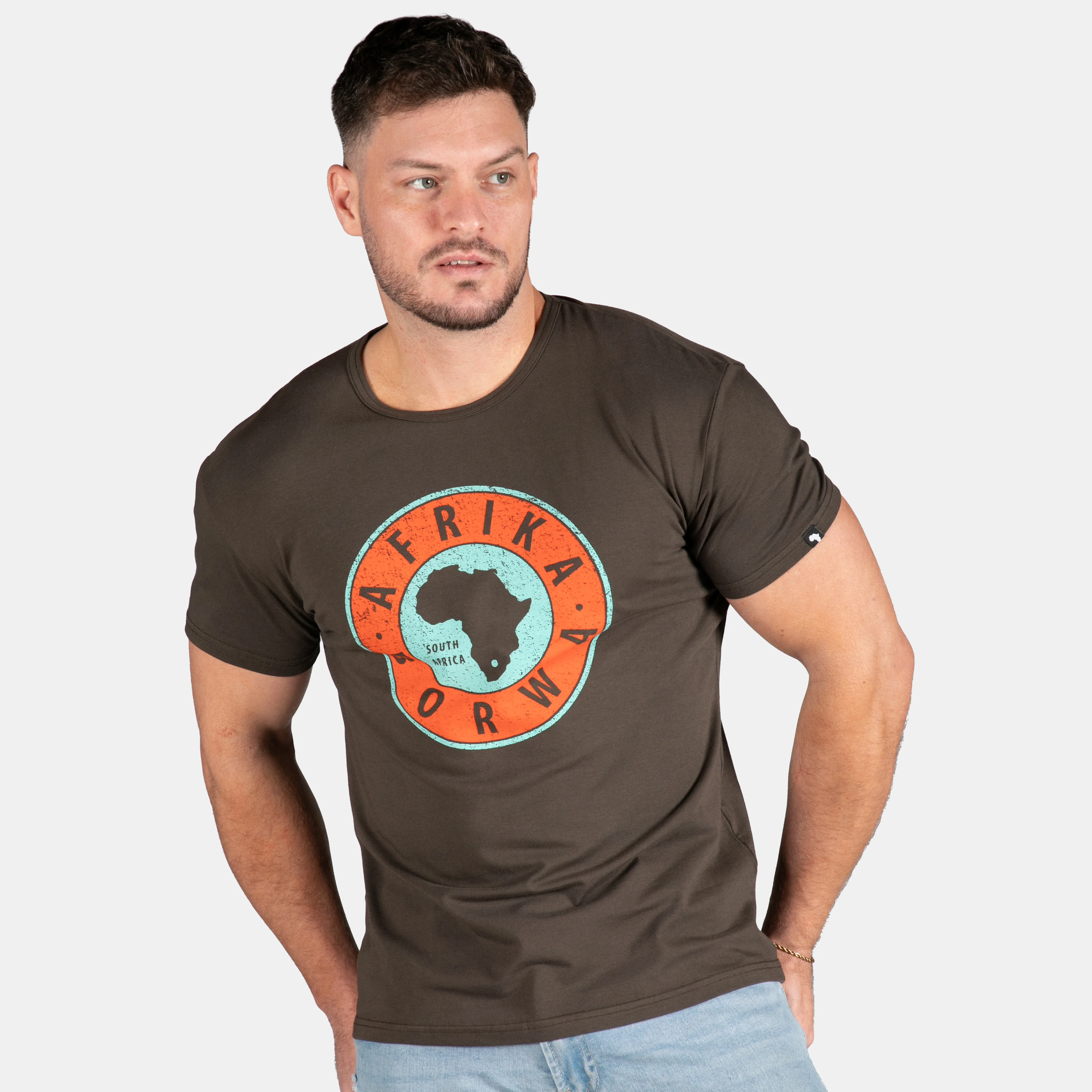 Men's South African Borwa Afrika Map T-Shirt - Chocolate