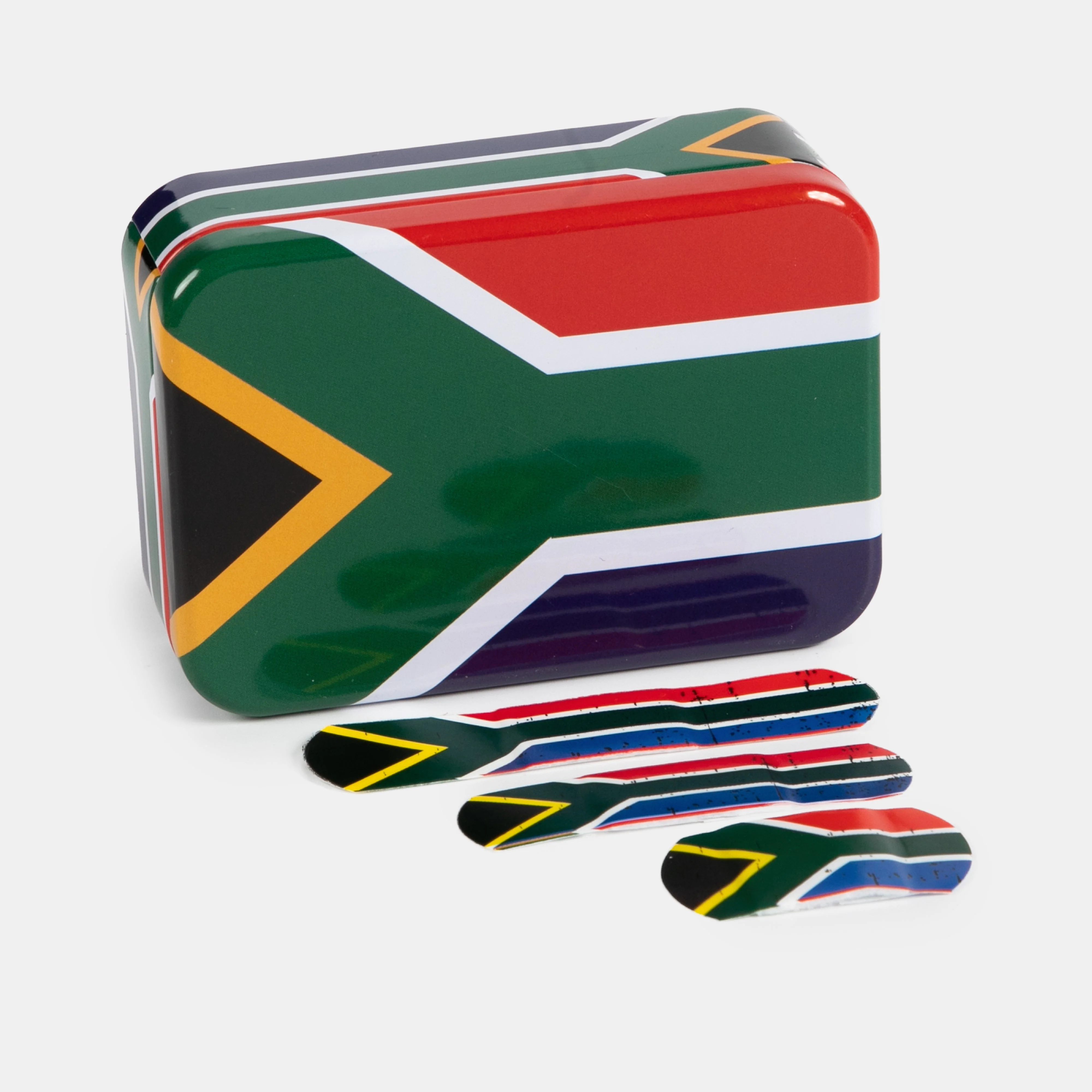 This beautiful new streamline tin houses excellent quality plasters all printed with the same South African flag design. It makes for a useful gift and a patriotic addition to your first aid kit.