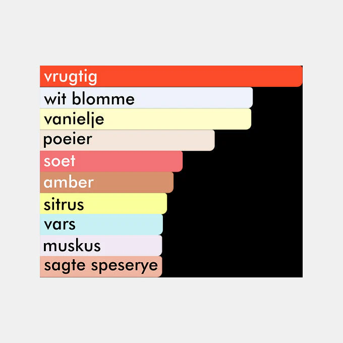 Rabadoe (meaning Tomboy) has top notes that surprise you with sparkling bergamot and mandarin. In the heart, white flowers manifest a voluptuous intensity that envelops femininity, with seductive vanilla, amber and musk.