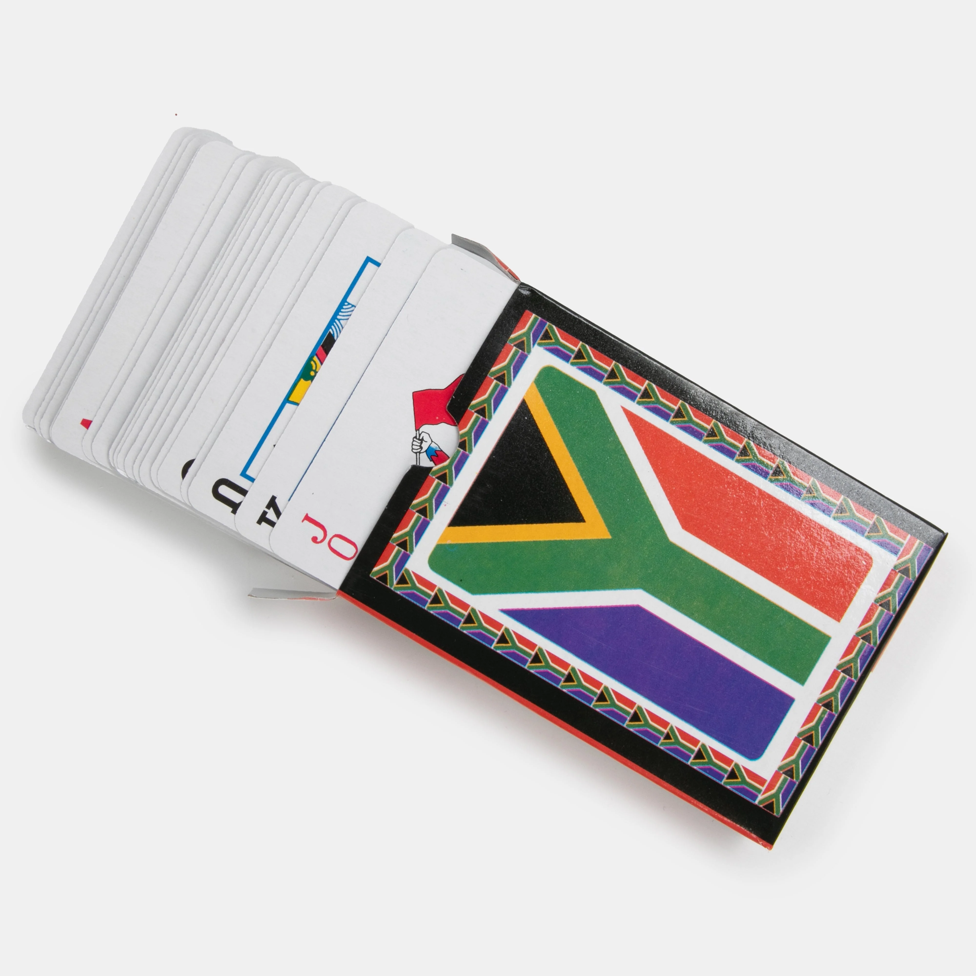 Pack of regular playing cards with the South African flag on the box and cards.
