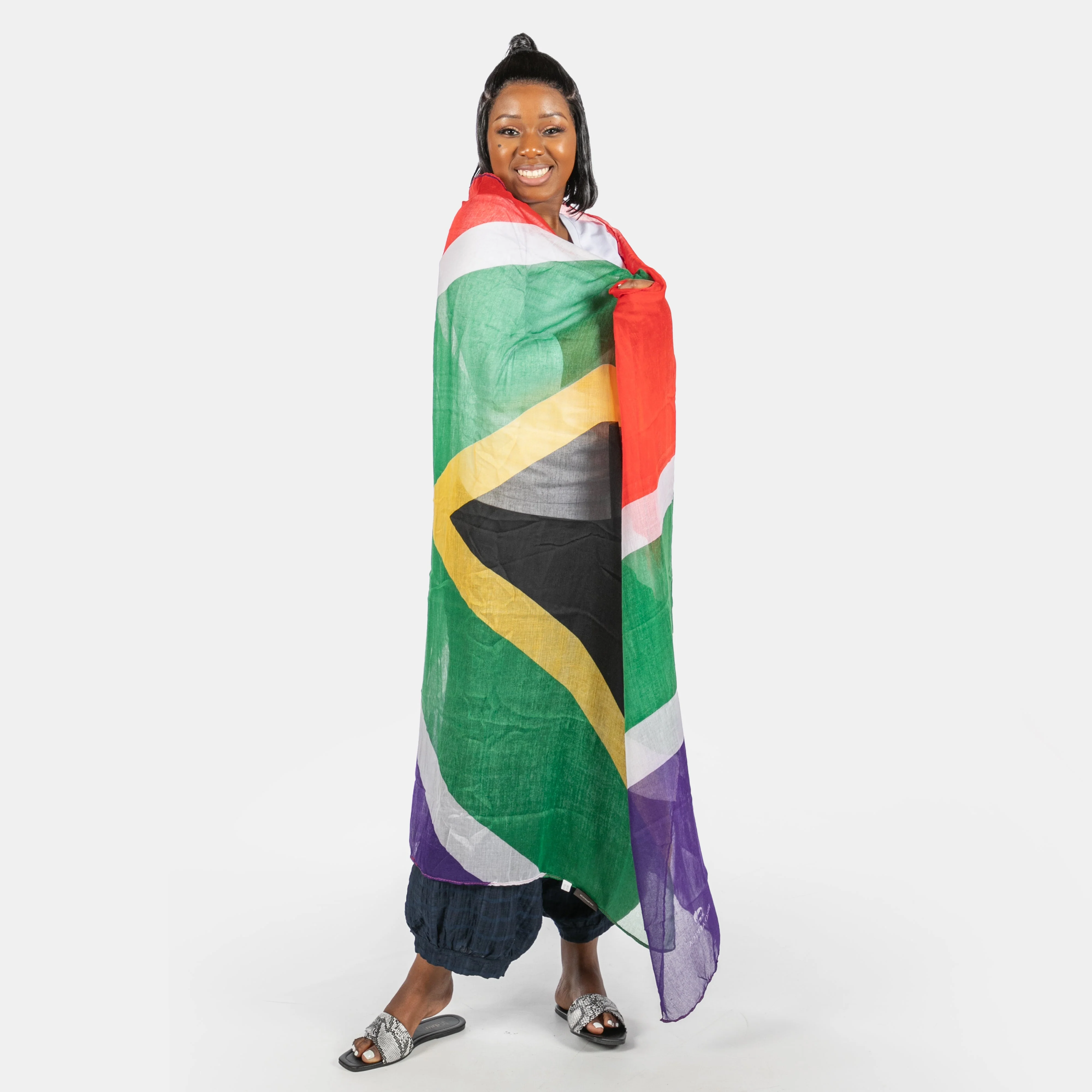 This sheer wrap or large scarf flows beautifully and can be worn in a number of ways. Proudly South African