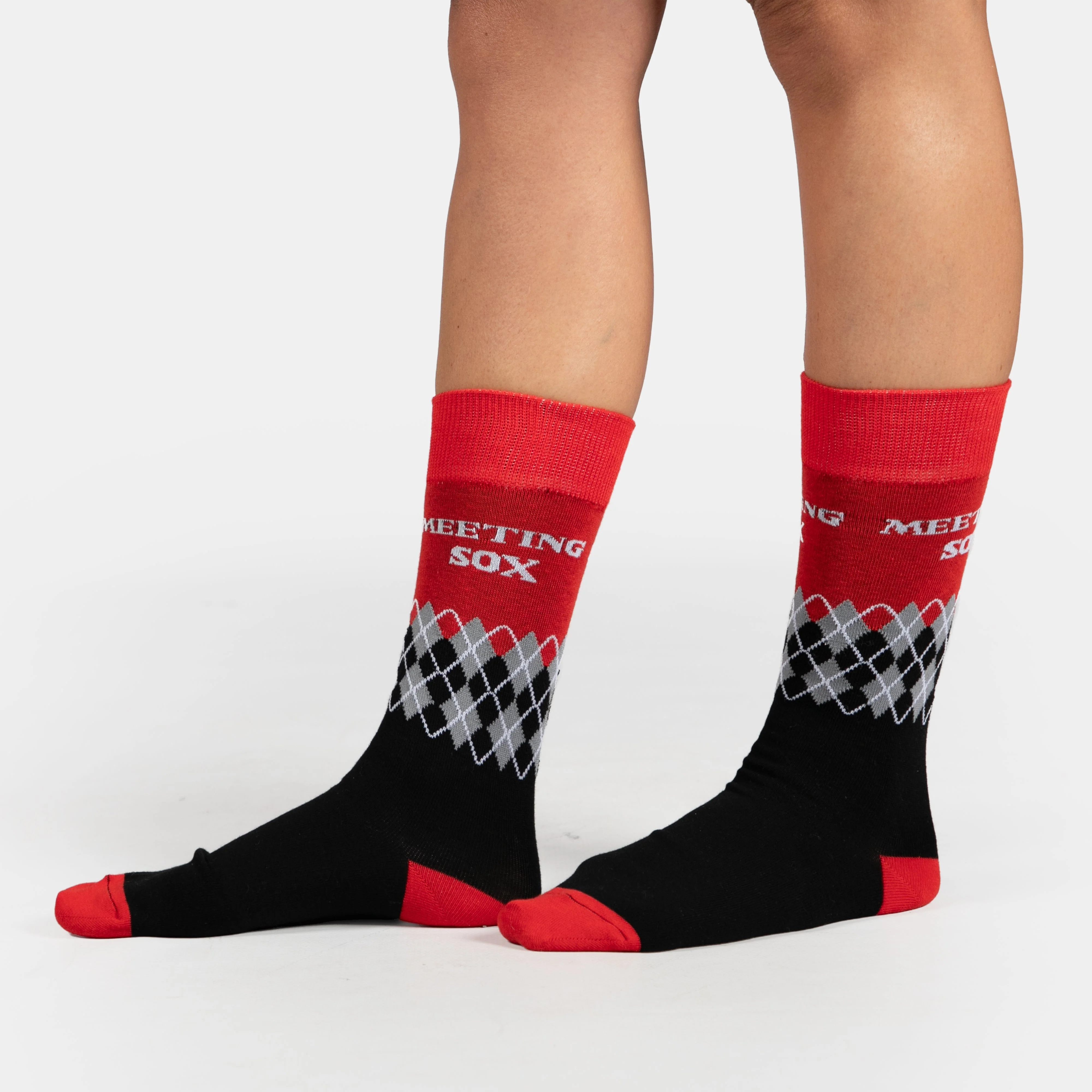 They feature a deep rib, red, black and grey pattern and text " Meeting Sox" A great gift for dad or a work colleague!
