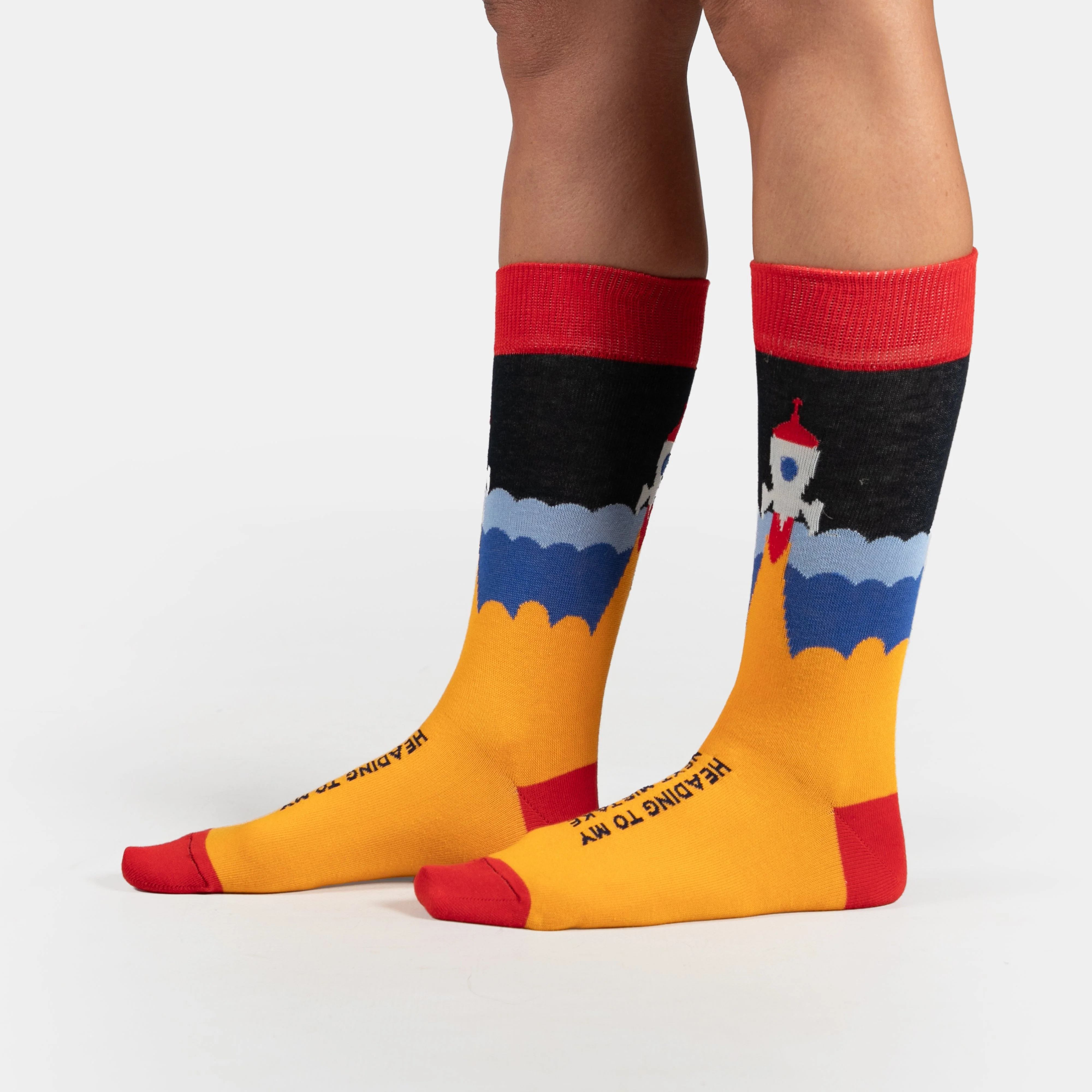 These full colour socks are spun in 90% Cotton to ensure they stay soft and 10% Spandex to keep them in place. They feature a deep rib, graphics and text "Heading for my next mistake"  A great tongue in cheek gift for an entrepreneur, groom or work colleague.