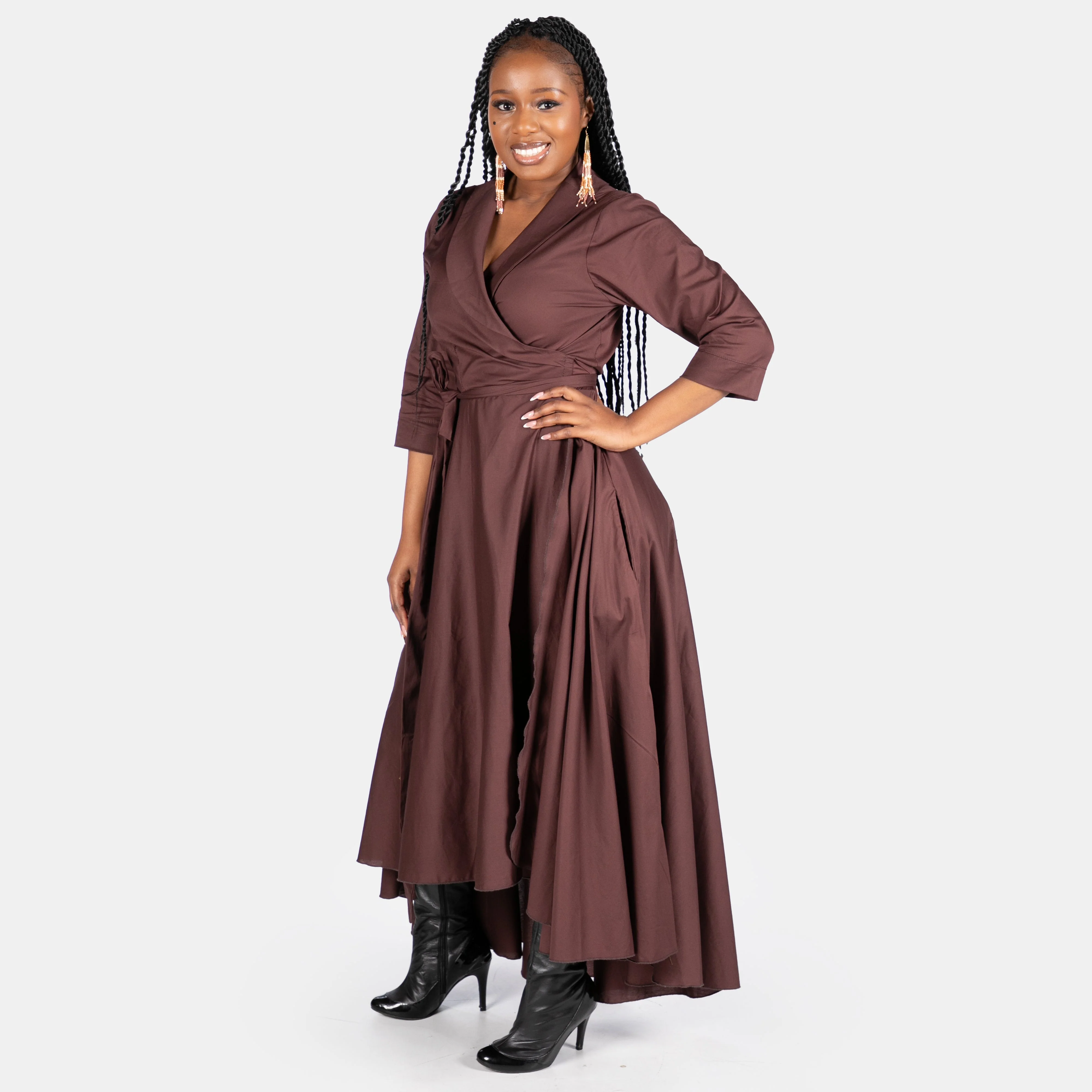 Inspired by the iconic Marilyn Monroe, this wrap dress has a longer length hem at the back.
