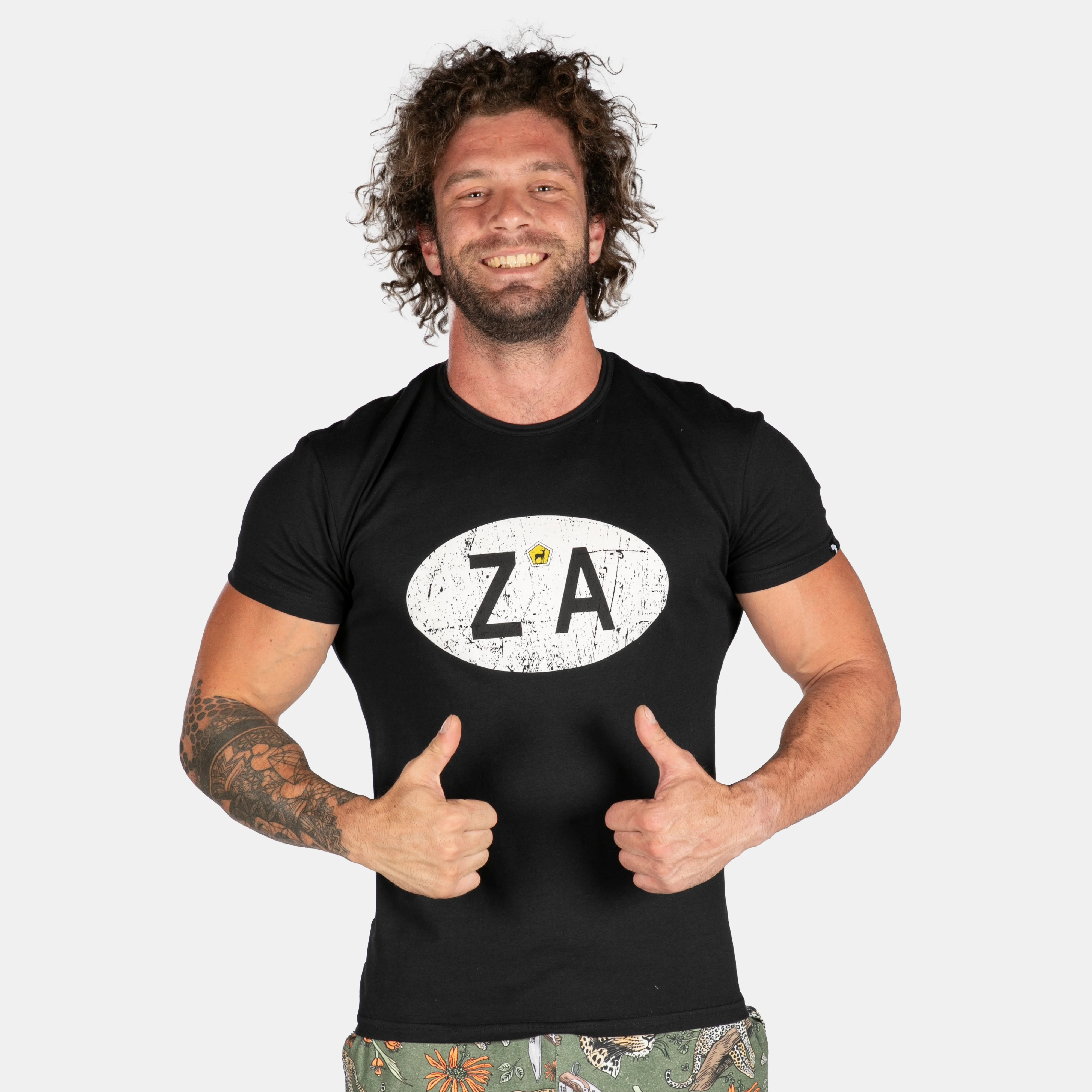 Back in stock! The ever popular distressed ZA t-shirt for men.